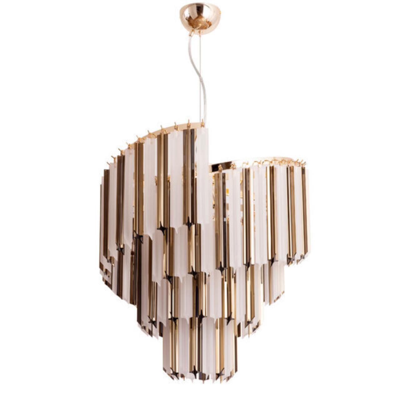 Роскошные люстры FRIZZANTE призваны украшать фешенебельные интерьеры. Свободно свисающие хрустальные декоративные элементы, расположенные в несколько рядов, образуют объемную конструкцию, которая при движении воздуха в помещении начинает «звучать». Сочетание золотых и матированных декоративных подвесок создаёт мягкий и воздушный образ модели. В коллекции три люстры разных размеров, есть возможность подобрать в помещения разных форматов. Большое бра может быть дополнением в ансамбль с люстрой, а может быть самостоятельным украшением интерьера.