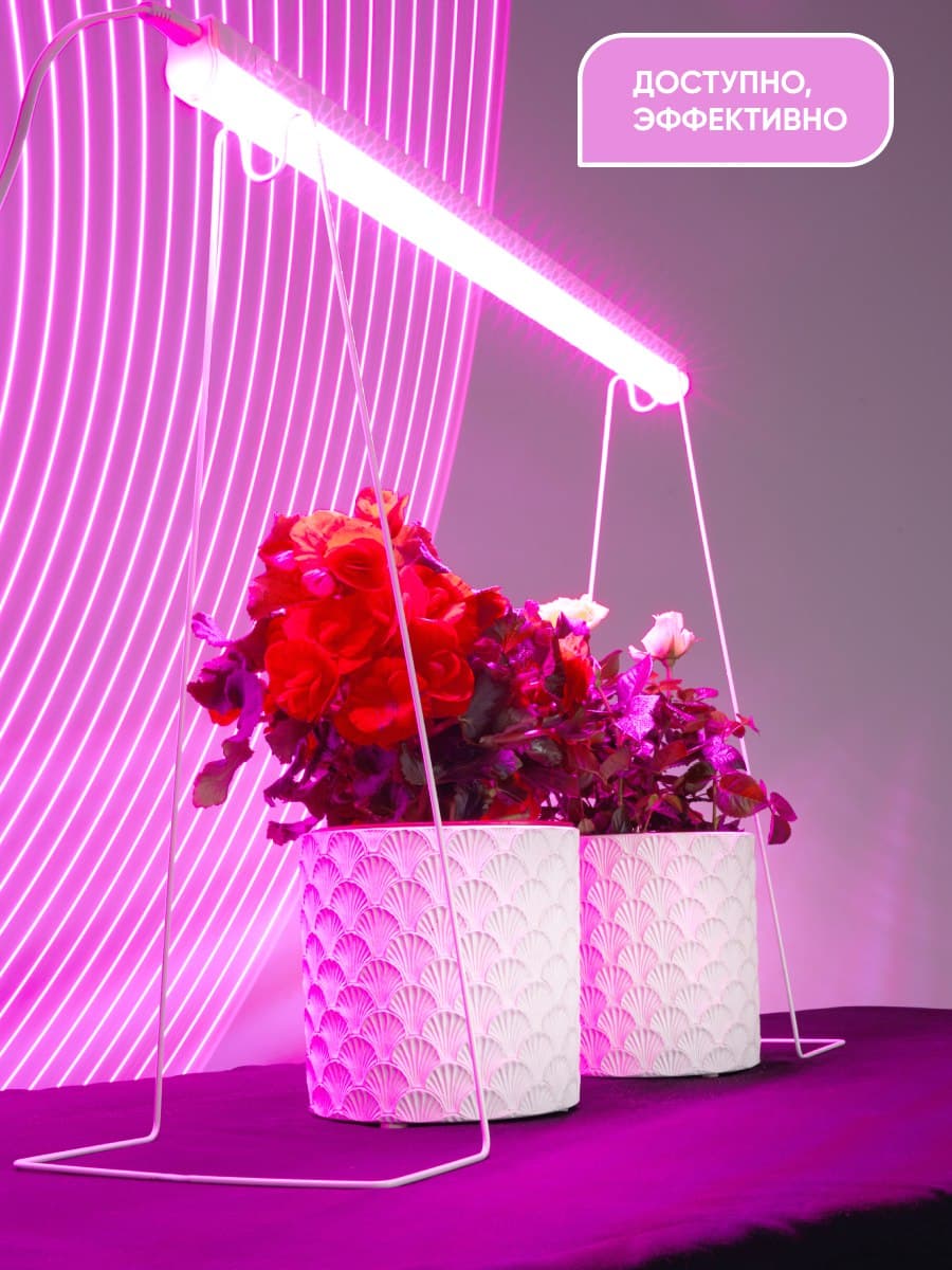 Светильник линейный светодиодный, для растений (ДББ) FERON AL7001, 9W, спектр фотосинтез (красно-синий), 230V, 360Lm, IP40, цвет белый, корпус пластик, рассеиватель пластик, 573*20*31 мм