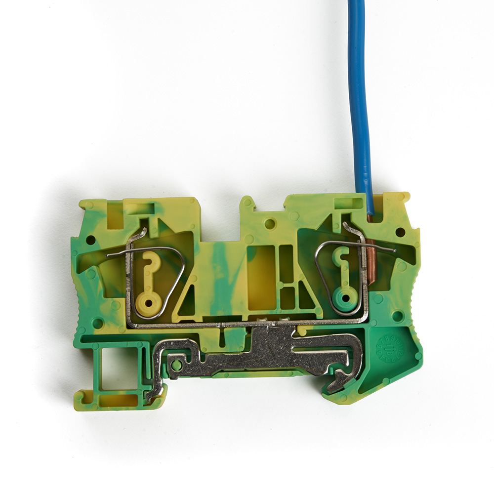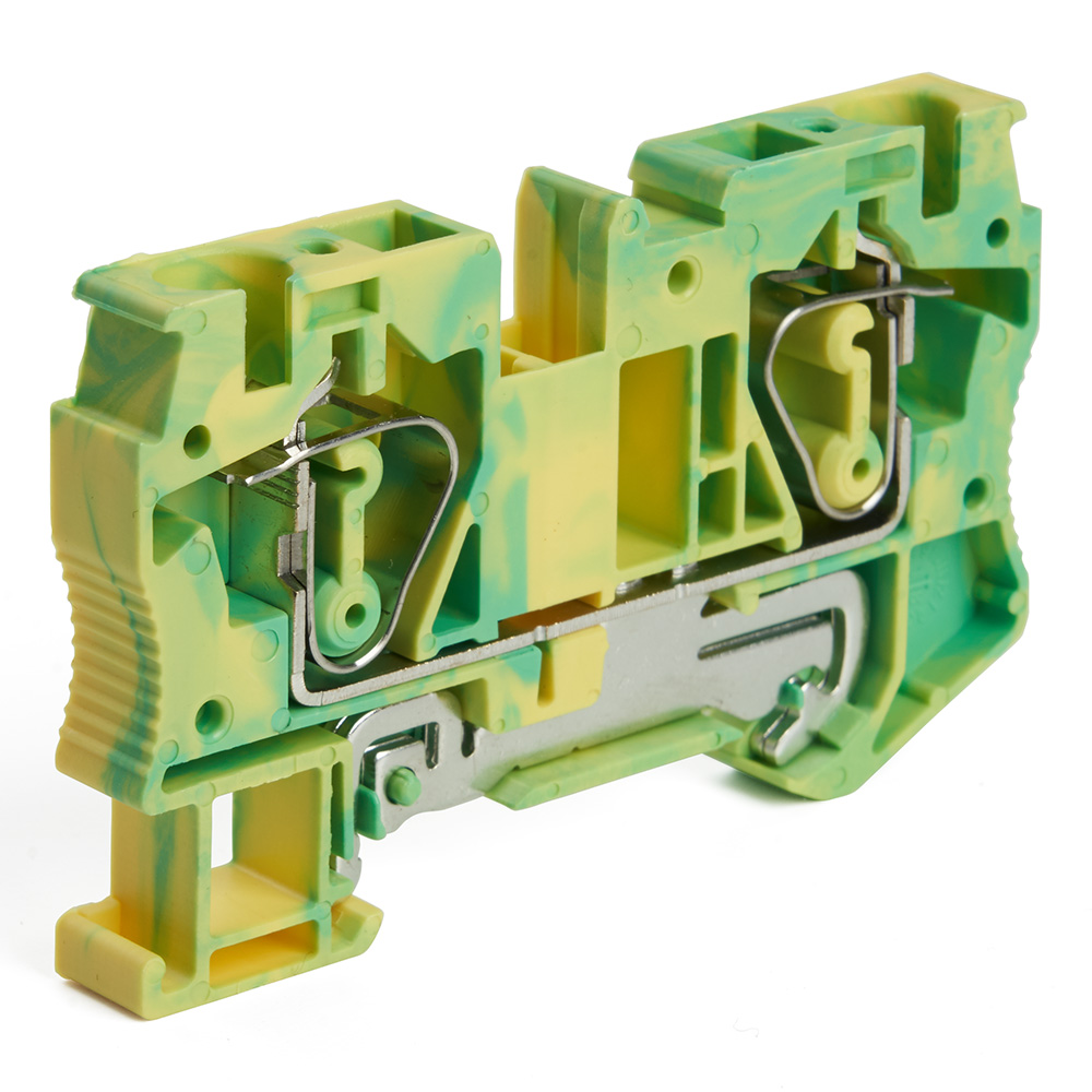 LD552-3-100 ЗНИ Зажим пружинный, 2-проводной проходной 10,0 мм² (JXB ST 10), желтый, зеленый
