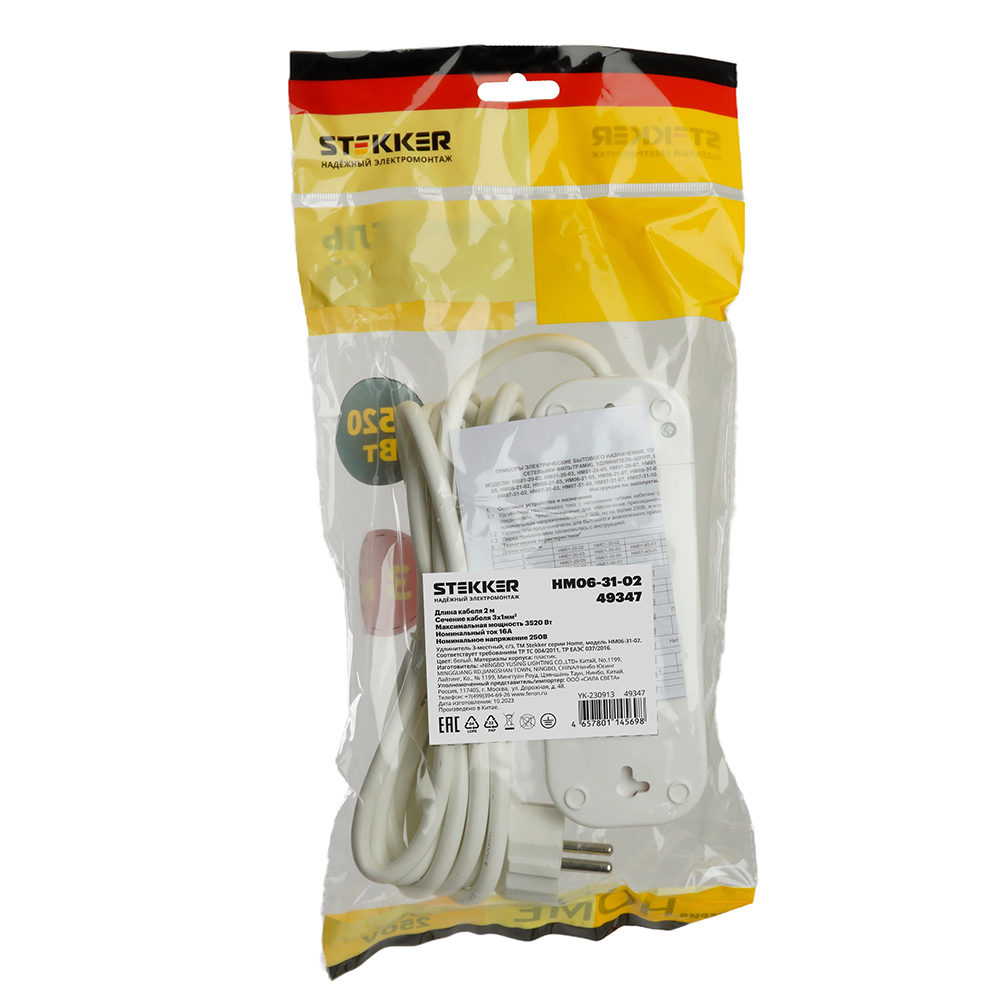Удлинители STEKKER 49351, серия Home, цвет белый, длина 3 м, количество розеток 4, сталь, сечение кабеля 1 мм2, тип кабеля ПВС, материал кабеля -, ток 16А, напряжение 250В, максимальная нагрузка 3520Вт, тип вилки - прямая. Диапазон рабочих температур +1..+35°C, степень защиты IP20, класс защиты от поражения эл. током 1, размеры изделия -*-*-. Гарантия 1 год.