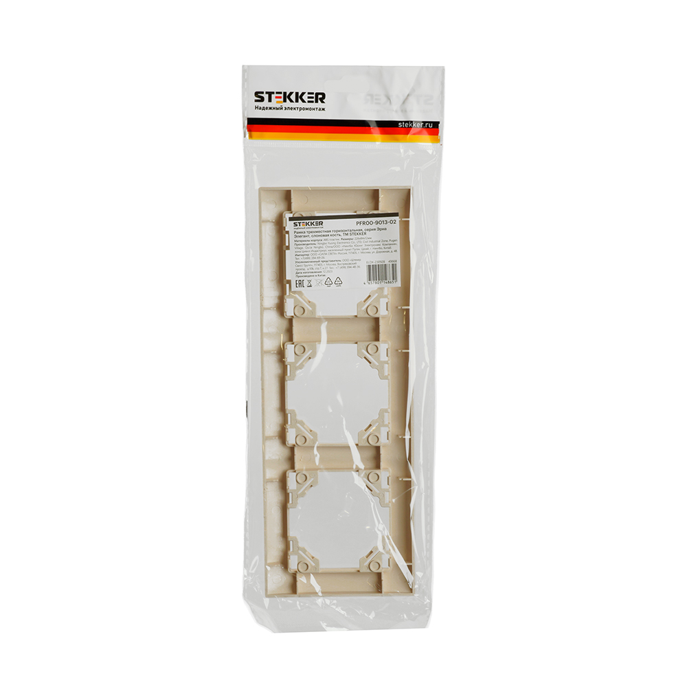 Рамка  STEKKER PFR00-9013-02 (расстояние между монтажными отверстиями: по гориз. - 200мм, по вертик.- 45мм) на  гнездо, , . Материал: ABS пластик, цвет слоновая кость, размер 225*83*11мм. Номинальное напряжение , номинальный ток , диапазон рабочих температур ,