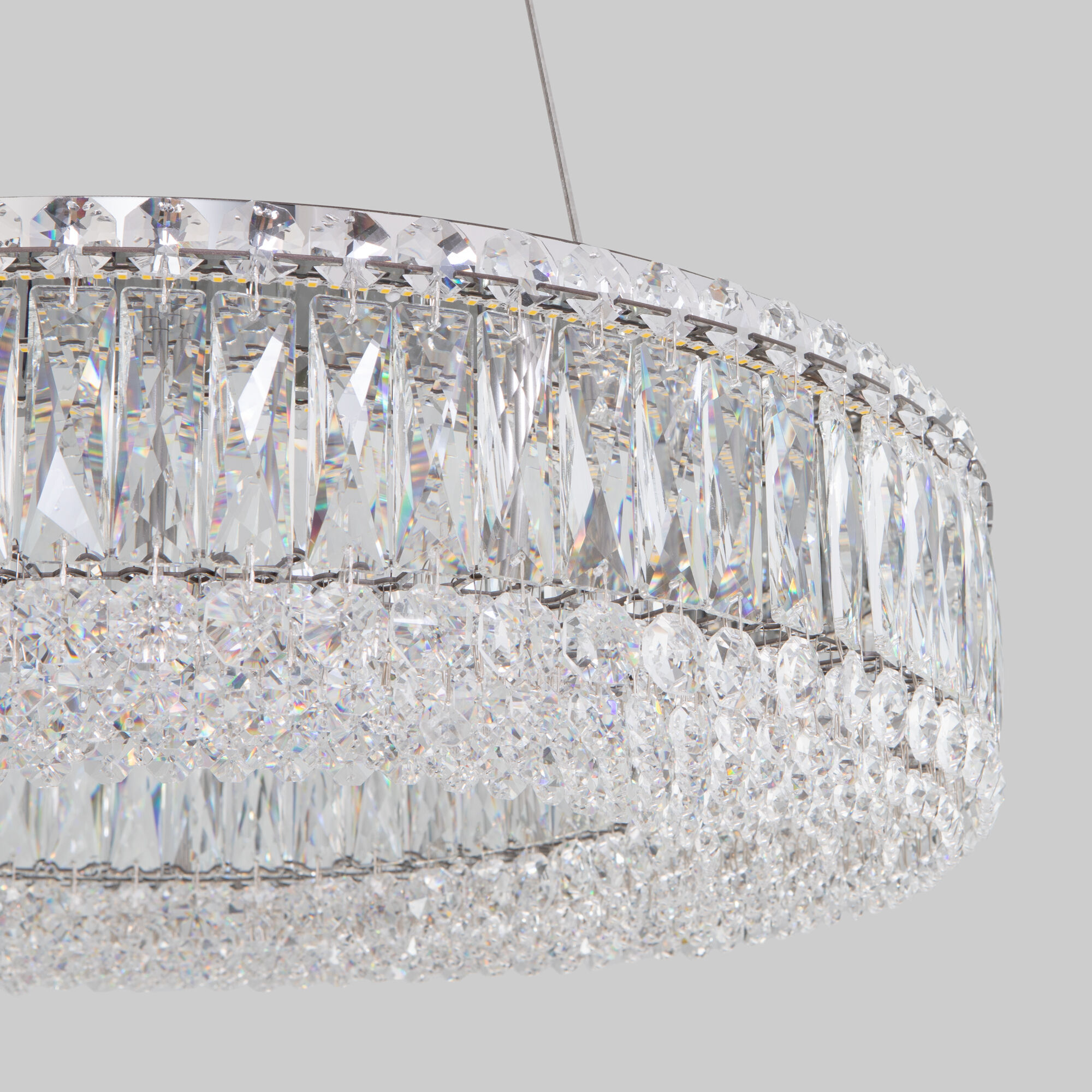 Светодиодная люстра Iride сочетает в себе современную форму и классическую роскошь хрусталя.