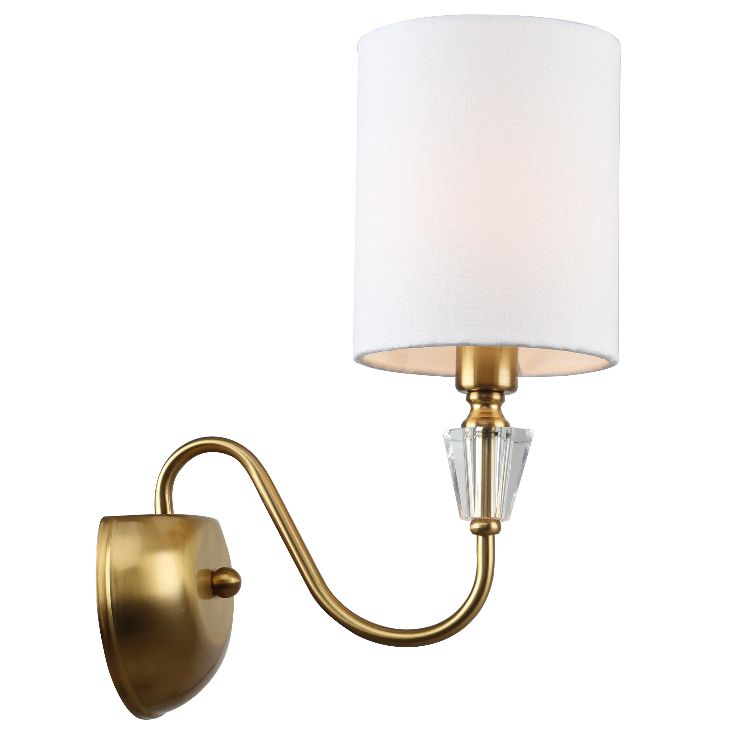 Светильник настенный из коллекции Estetio / Эстетио выполнен из металла, гальванизированного в цвет бронзы, и декорирован прозрачным массивом хрусталя. Текстильный абажур белого цвета с термостойким акрилом внутри создает мягкий рассеянный свет. Премиальное качество и неповторимыи? дизаи?н светильников идеально подои?дут как в классические, так и современные интерьеры.