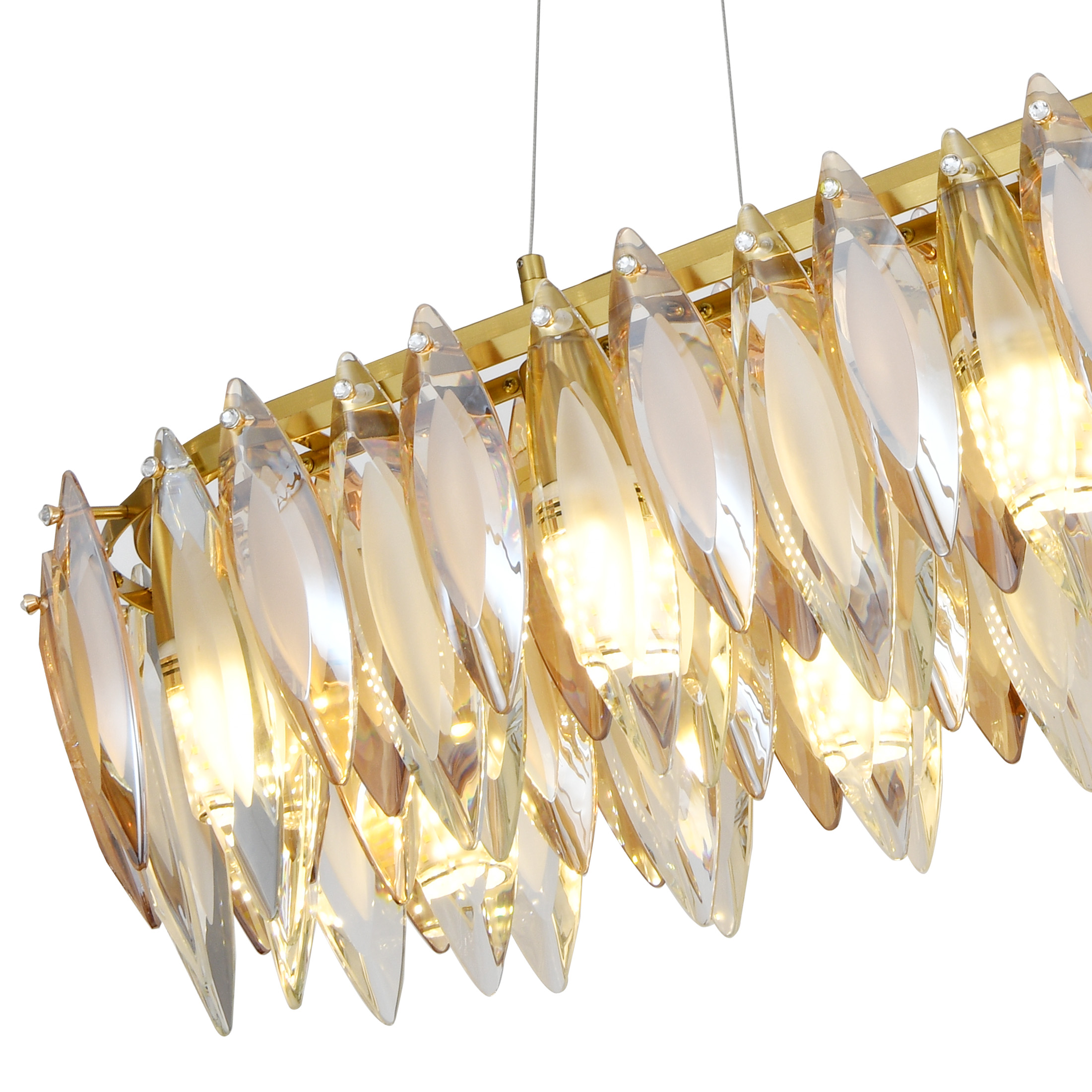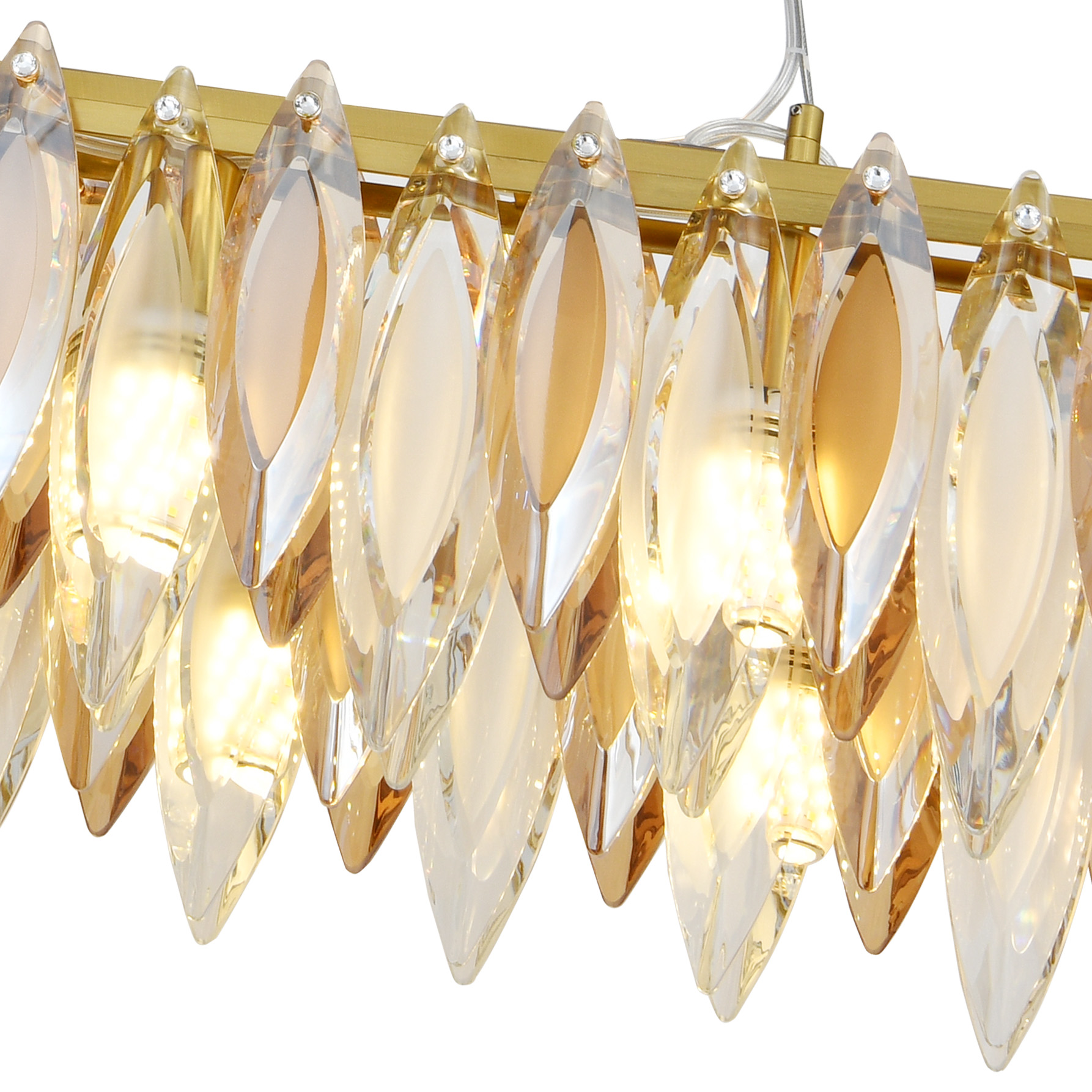 Люстра подвесная вытянутой формы из коллекции New Ton / Нью Тон выполнена из металла, гальванизированного в цвет бронзы, и декорирована комбинацией прозрачного и янтарного хрусталя вытянутой формы. Премиальное качество хрусталя высшей категории и неповторимый дизайн светильника идеально подойдут как в классические, так и современные интерьеры. Из данной коллекции светильников можно сделать индивидуальный заказ любого цвета и размера.