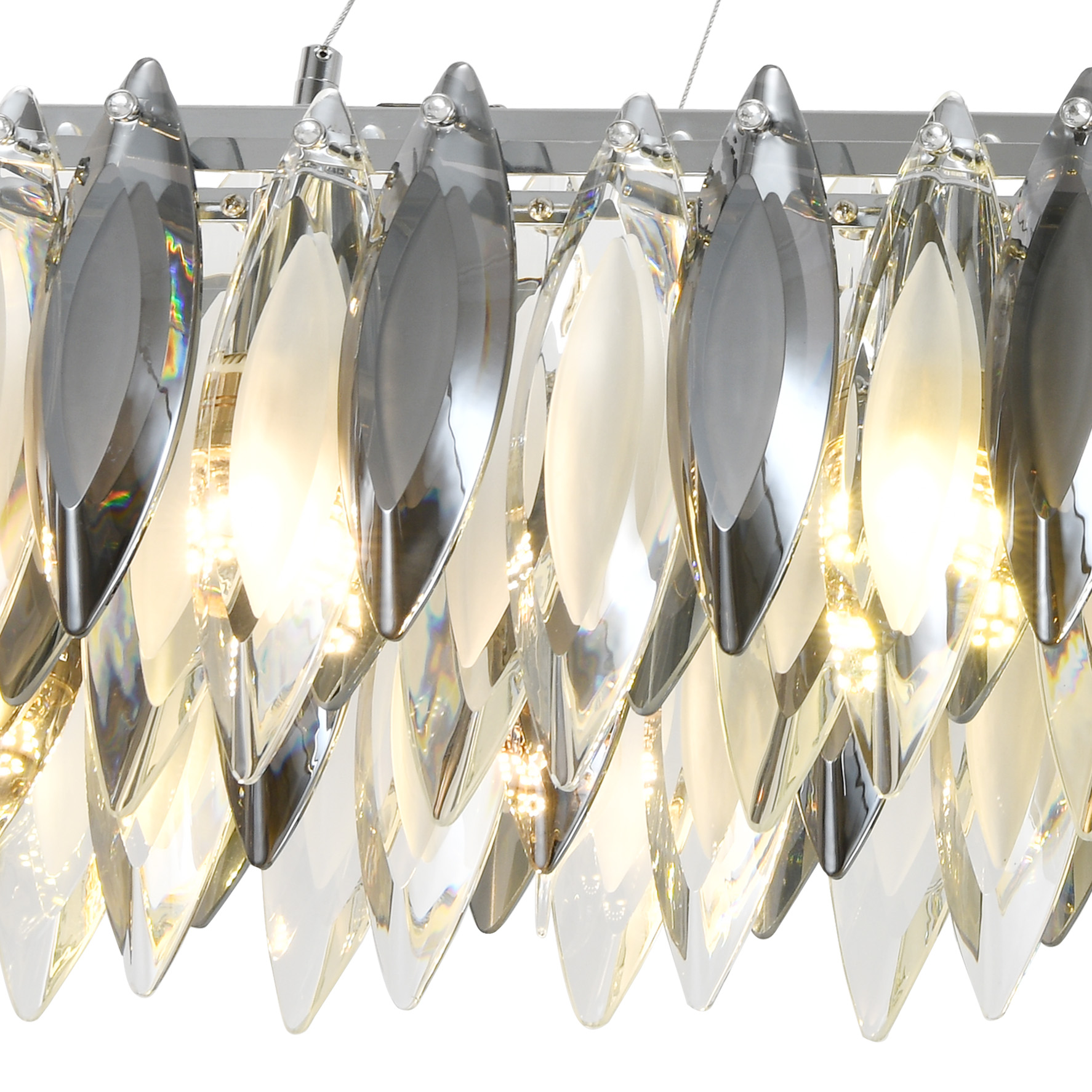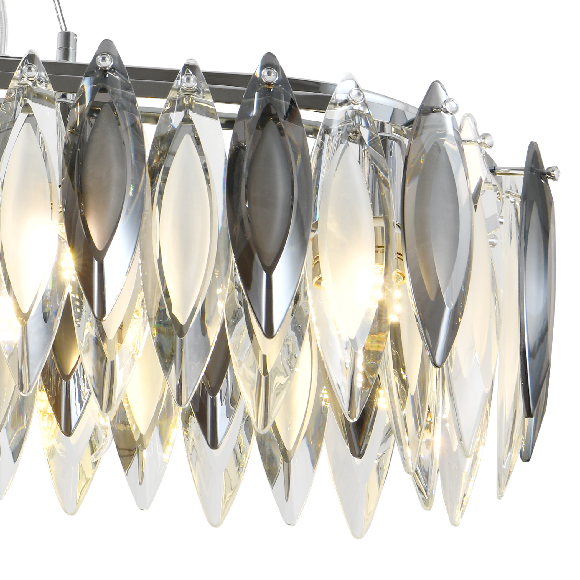 Люстра подвесная вытянутой формы из коллекции New Ton / Нью Тон выполнена из металла, гальванизированного в цвет хрома, и декорирована прозрачным и дымчатым хрусталем вытянутой формы высшей категории. Премиальное качество и неповторимый дизайн светильника идеально подойдут как в классические, так и современные интерьеры. Из данной коллекции светильников можно сделать индивидуальный заказ любого цвета и размера.