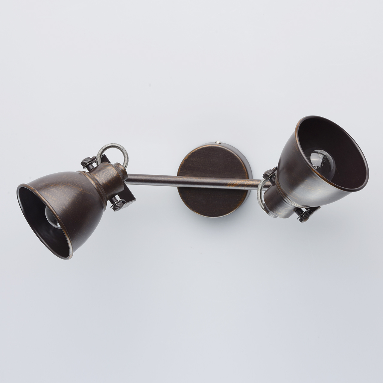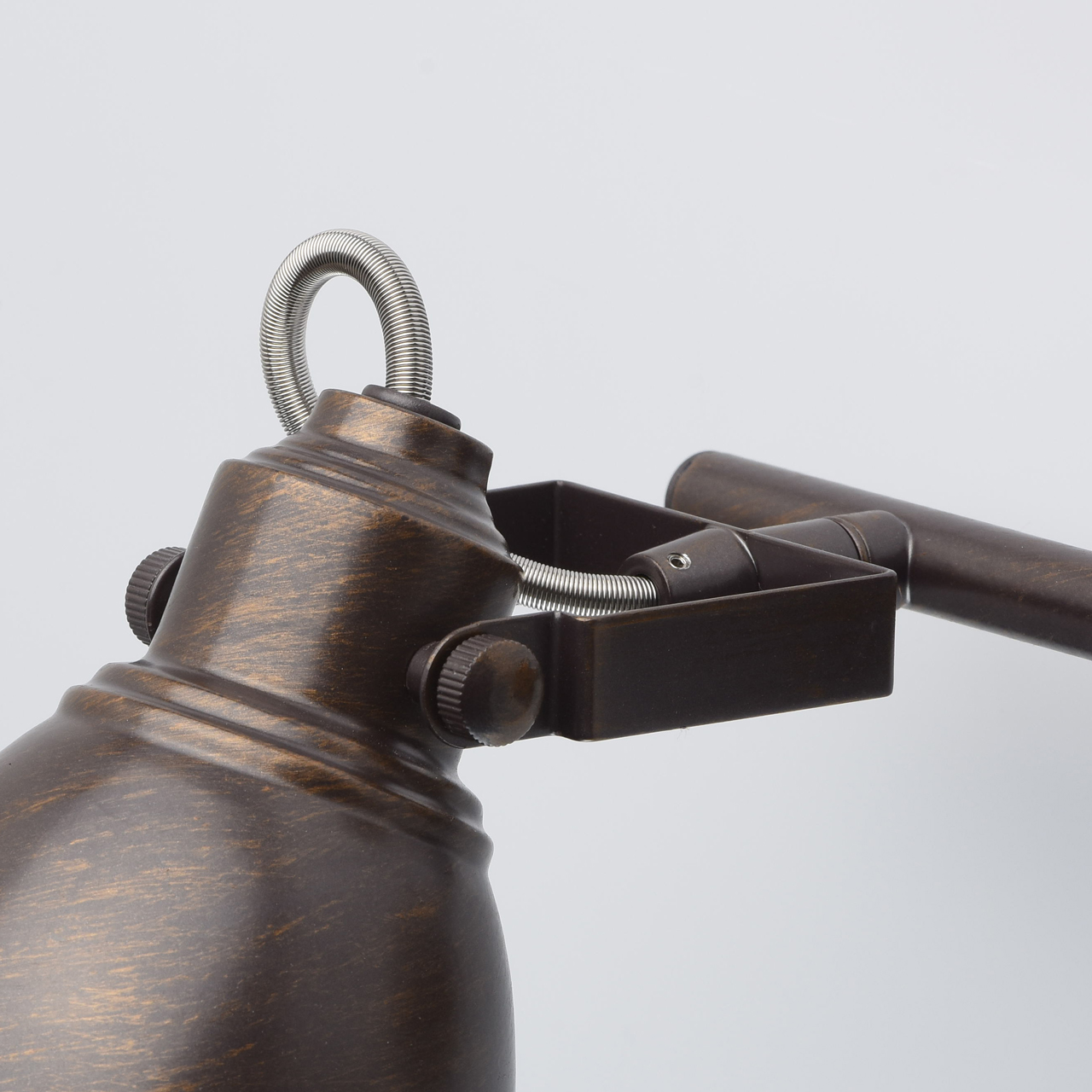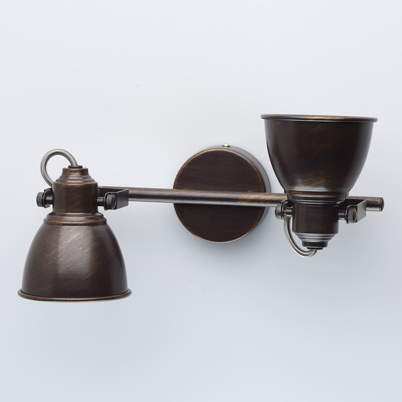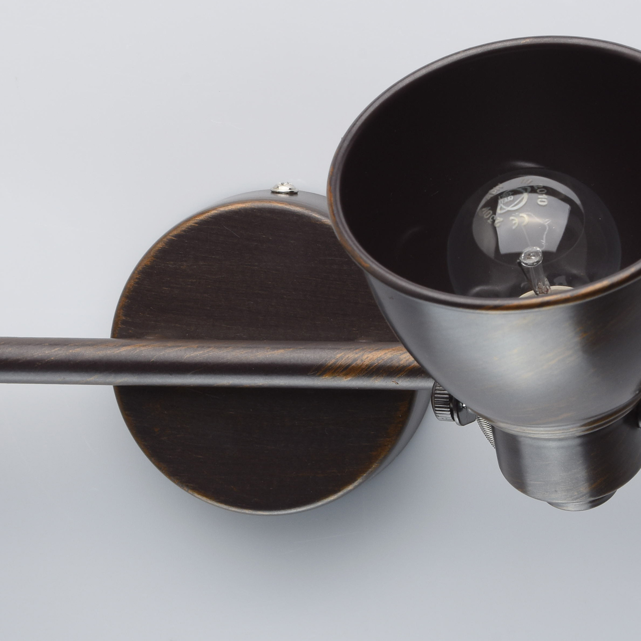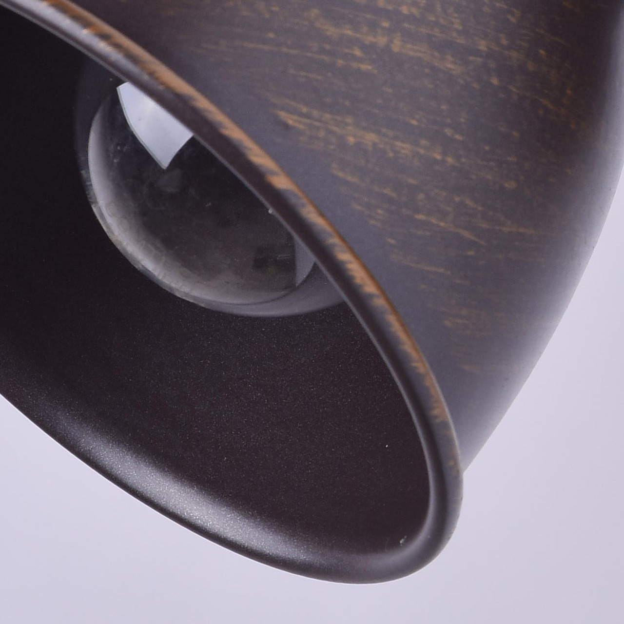 Арматура светильника выполнена из сплава металла и обработана по технологии ручного окрашивания. На первый, основной, слой цвета кофе нанесен второй слой цвета бронзы